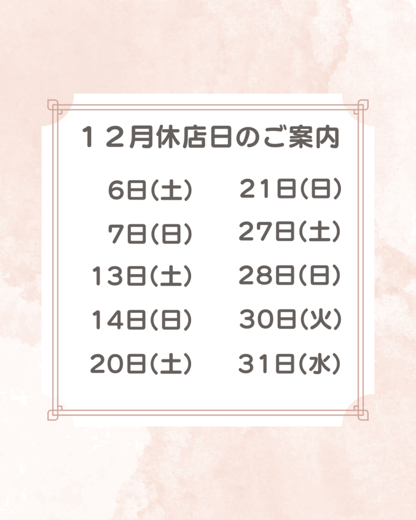2025年12月休店日は下記の通りです。