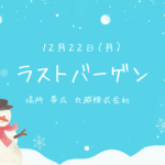 下記の日程でラストバーゲンを開催いたします。 今年、最後の売り出しとなります。 ご来店お待ちしております。 2025年12月22日(月) 9時〜17時30分